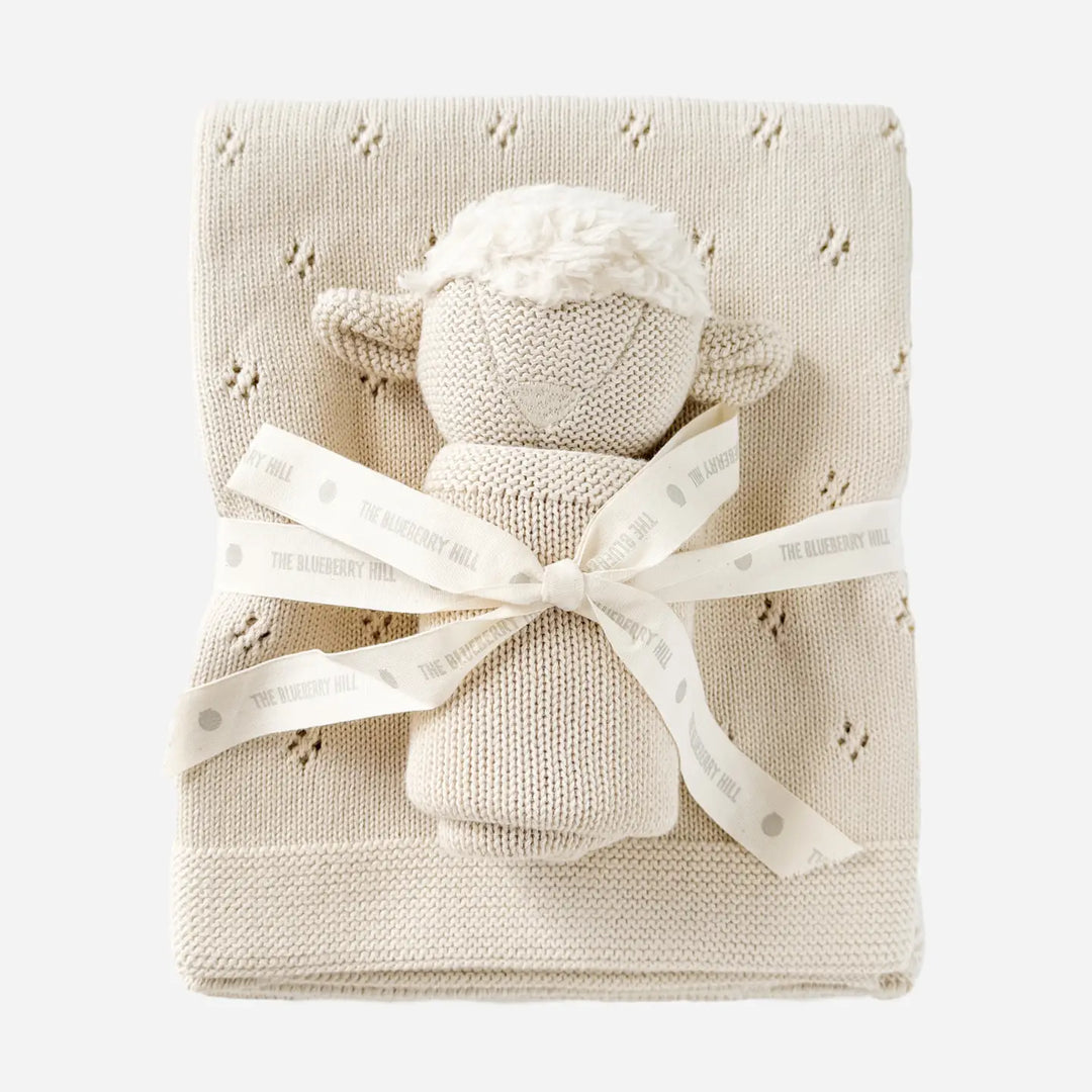 The Blueberry Hill - Lovey + Blanket Gift Set in Cream