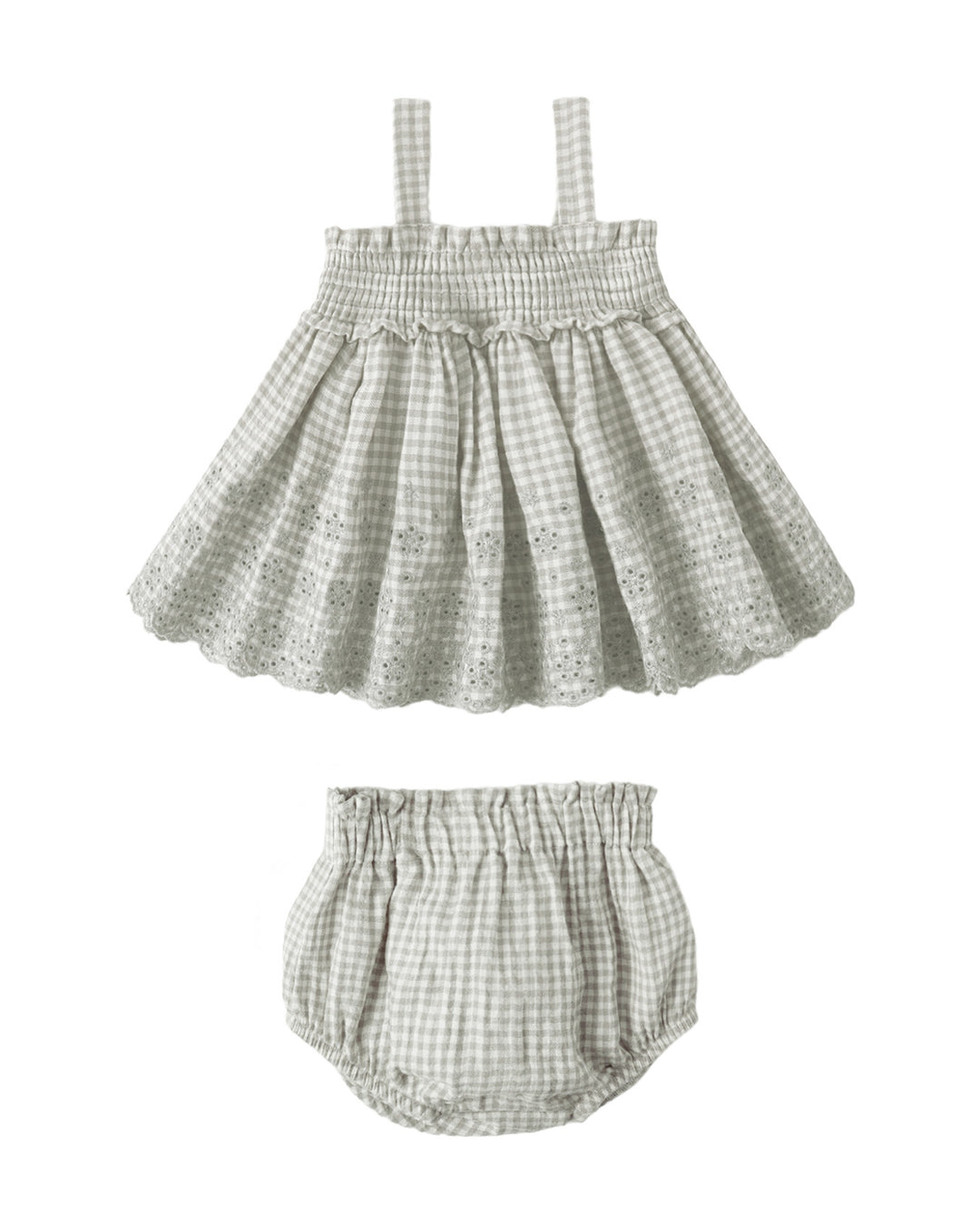 Quincy Mae – Mae Smocked Top & Bloomer Set in Sage Gingham