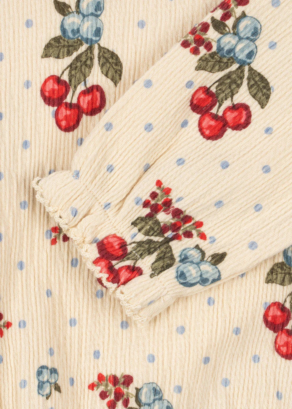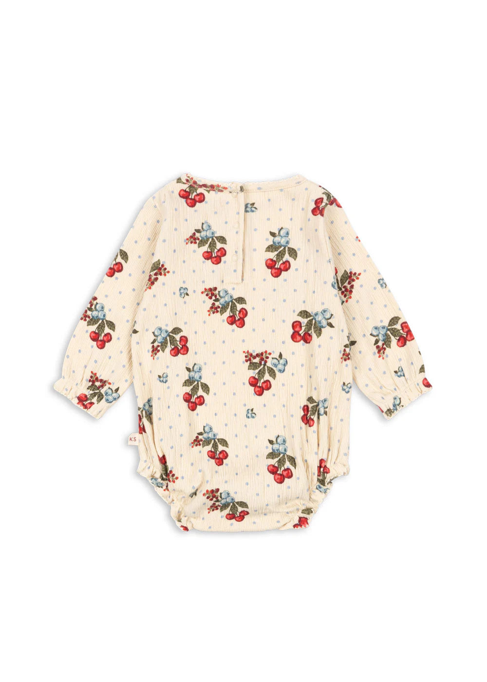 Long-sleeved romper in a soft and stretchy organic cotton fabric. Designed with snap buttons at the crotch for easy dressing.