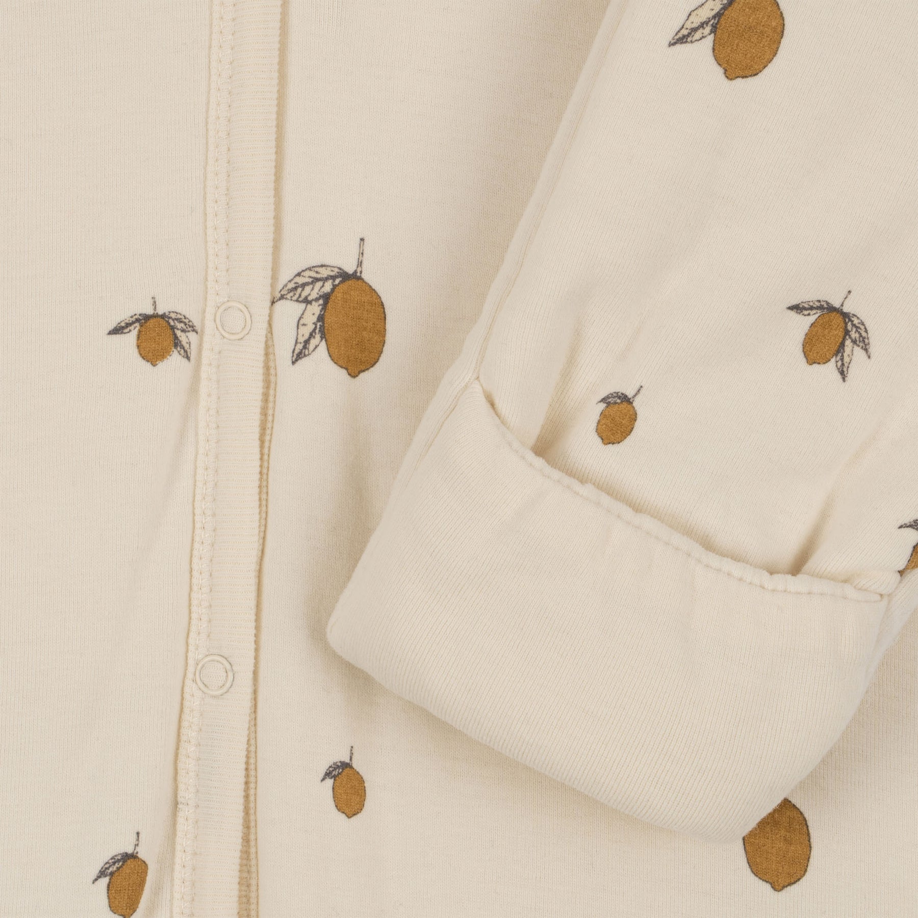 Made in 100% organic cotton with polyester padding. Practical fold-up design on onesies up to size 12 months, designed to keep tiny hands and feet warm. From 18 months and up, the onesies are designed with elasticated sleeves and legs for a flexible fit.