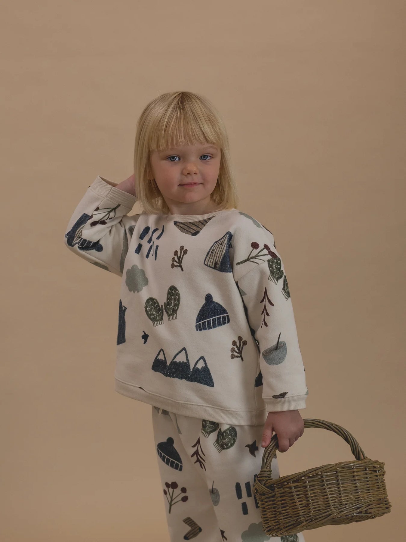 This playful printed sweatshirt is made of nature's original undyed cotton, the finest of organic fabrics. Undyed cotton means a unique look, as the colour of the fabric varies from batch to batch.