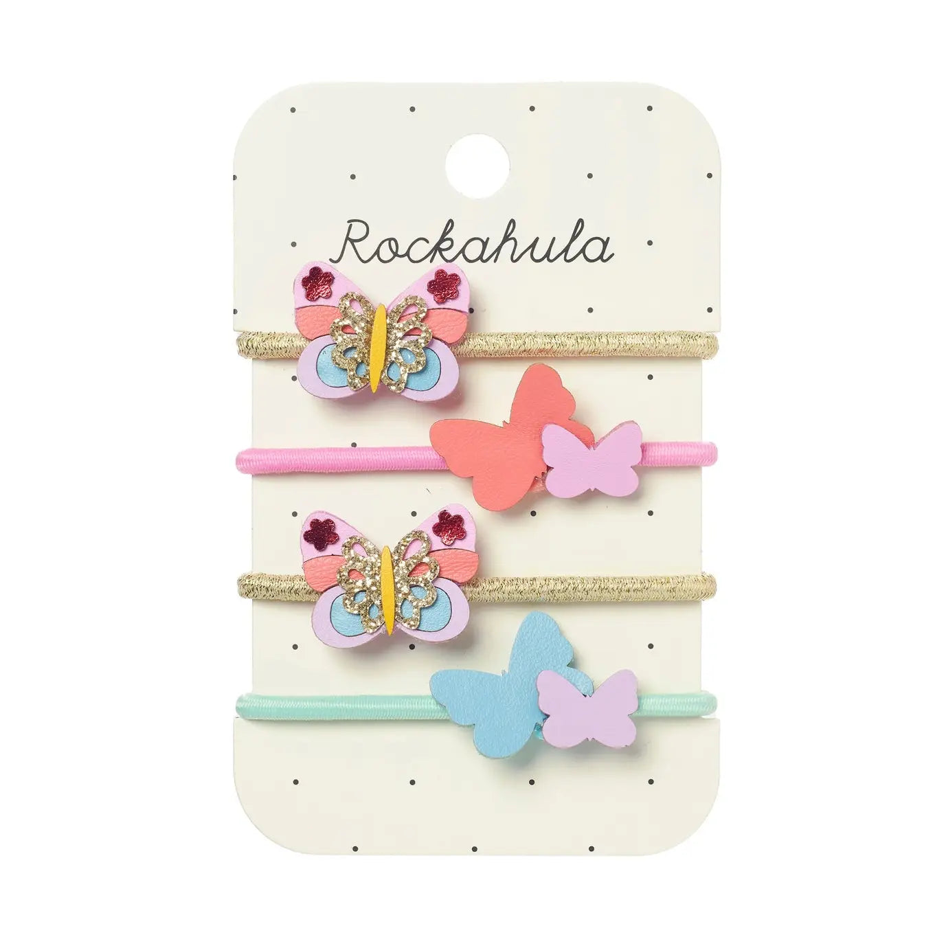 Set little hearts a-flutter with these super fun set of ponies. This pack of four ponies feature two delicate butterflies and two sets of butterfly silhouettes, set on bright coloured elastics! The perfect companions for a flutter at the summer carnival!