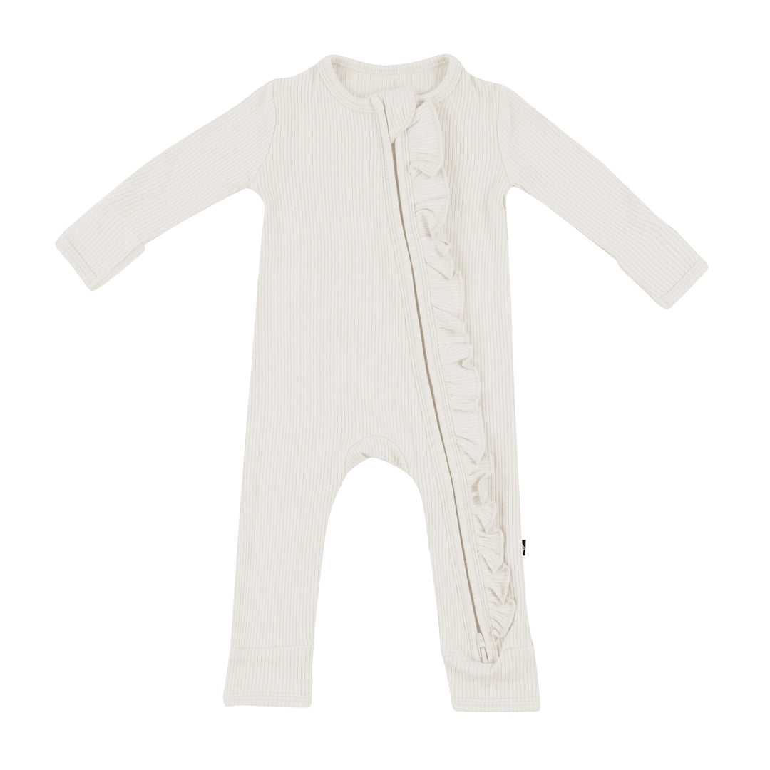 Kyte Baby - Ribbed Ruffle Zipper Romper in Oat