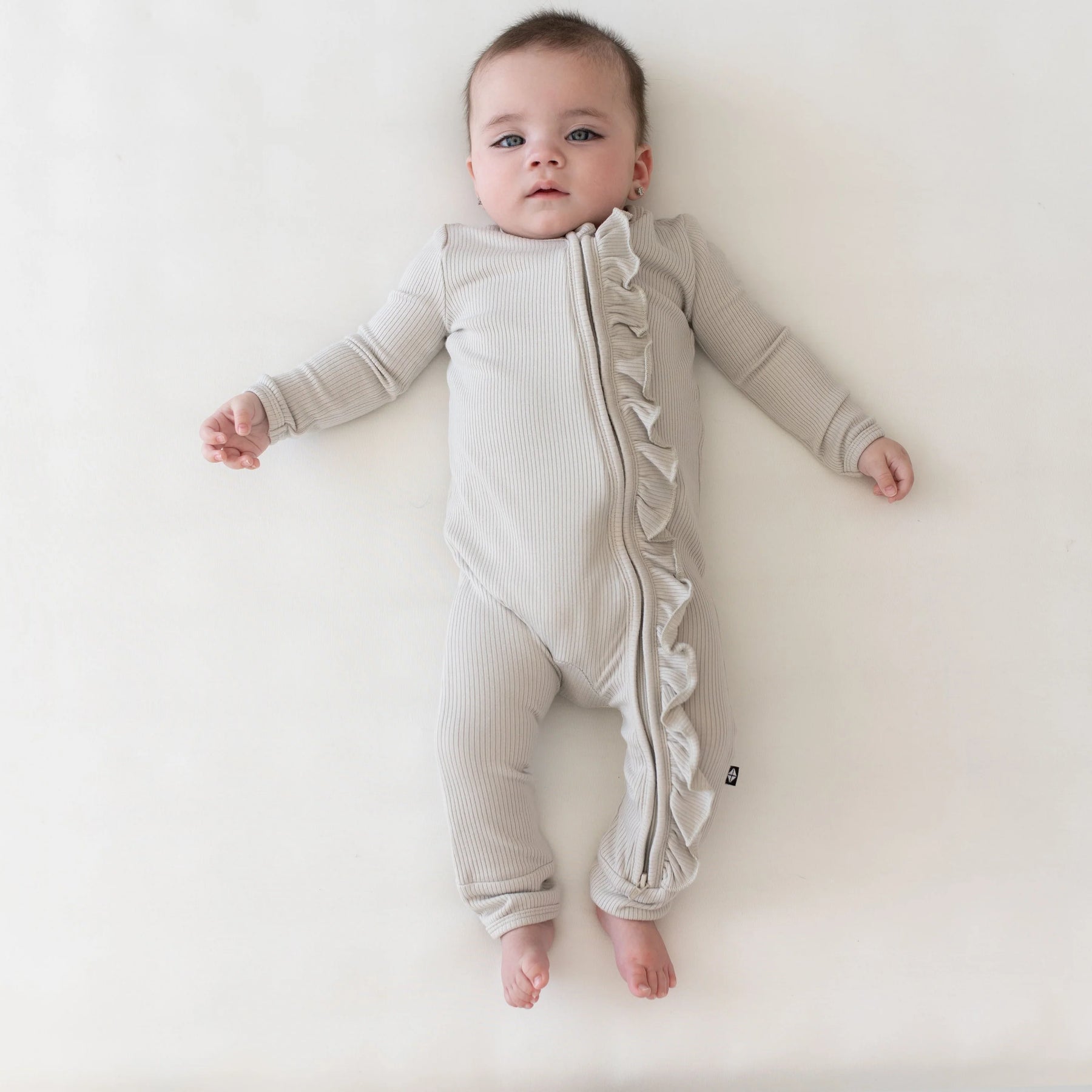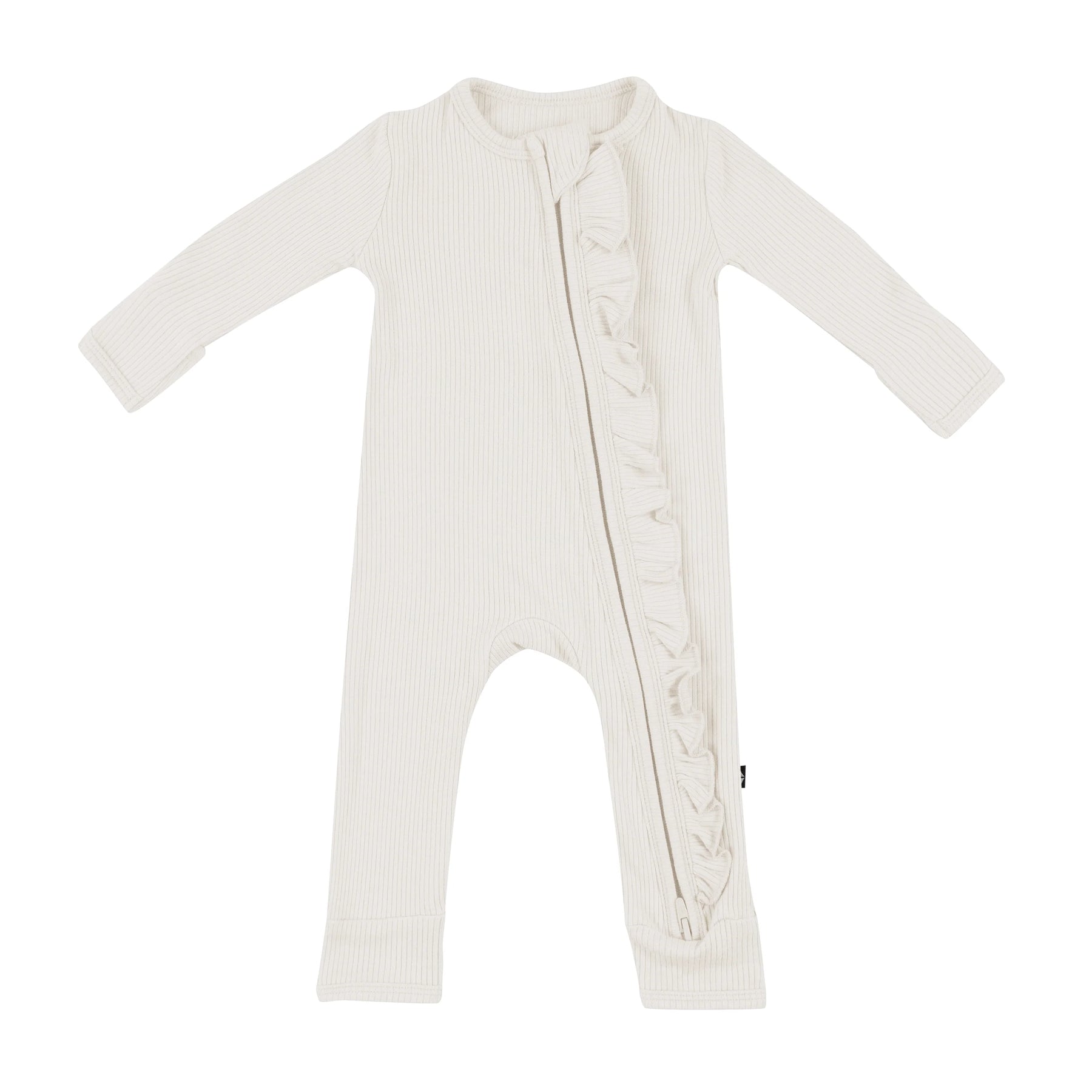 Kyte Baby - Ribbed Ruffle Zipper Romper in Oat