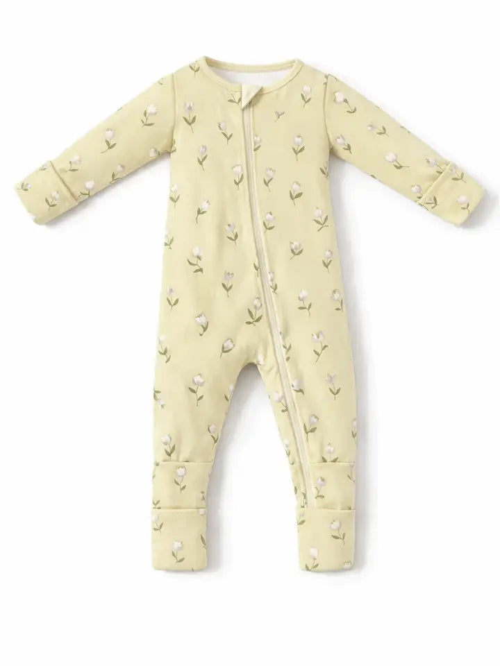 Honeycomb Goods - Zip Bamboo Pajamas in Buttercup Tulips