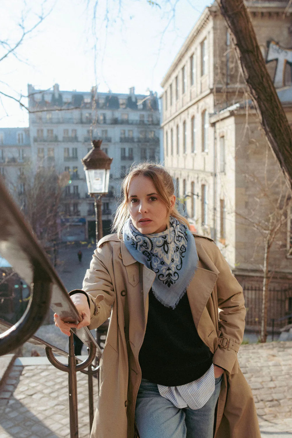 Maison Lecomte Flament – Wool Silk Blend Bandana in Secret Garden Ciel