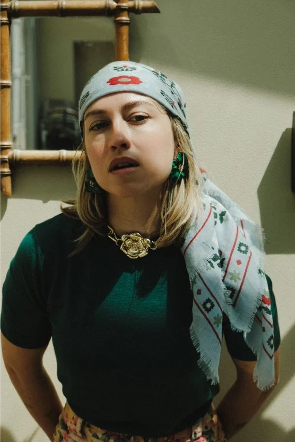 Maison Lecomte Flament – Wool Silk Blend Bandana in Secret Garden Ciel