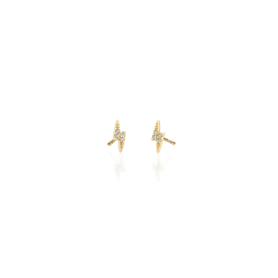 Kris Nations – Lightning Bolt Crystal Stud Earrings 18K Gold Vermeil