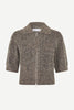 Short-sleeved cardigan with a regular fit and dropped shoulders. Two-way zipper closure on the front. Rib-knitted collar, cuffs, and hem. Main material made from an elastic wool-blend.