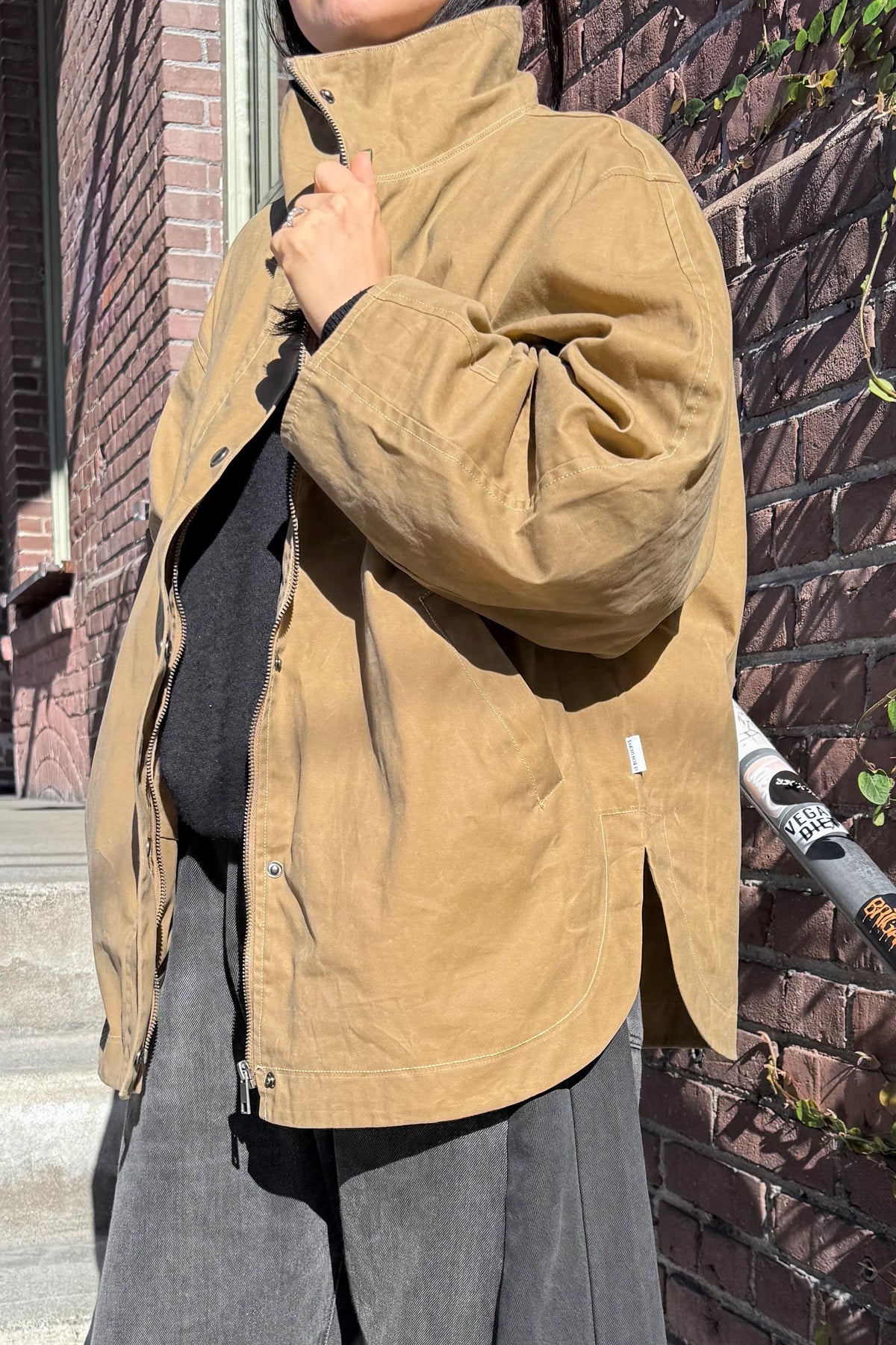 Rain or shine, the Blaire fits a niche need in any wardrobe. Made from durable waxed cotton, it’s built to take on light, wet weather with a modern silhouette that features a high funnel neck, roomy barrel sleeves, and a secure zip-and-button front. It’s the kind of piece that ages beautifully, developing a unique character with every wear. Finished with deep front pockets and a cheeky interior loop for keys or trinkets, it is the perfect blend of practical and playful.