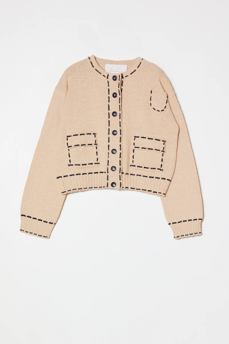 Atelier Delphine – Lottie Boucle Cotton Sweater in Grain and Navy