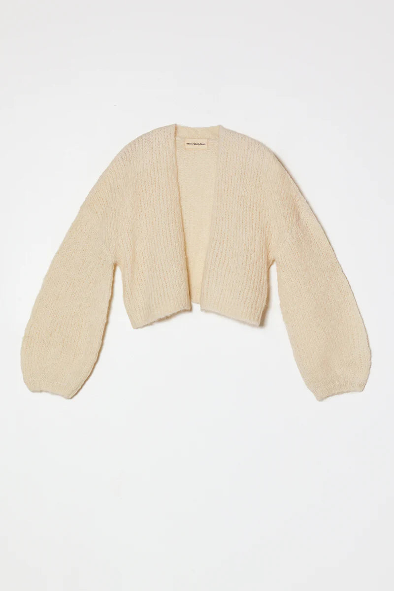 Kerri Rosenthal – Short Puff Sleeve Cardigan in Cream