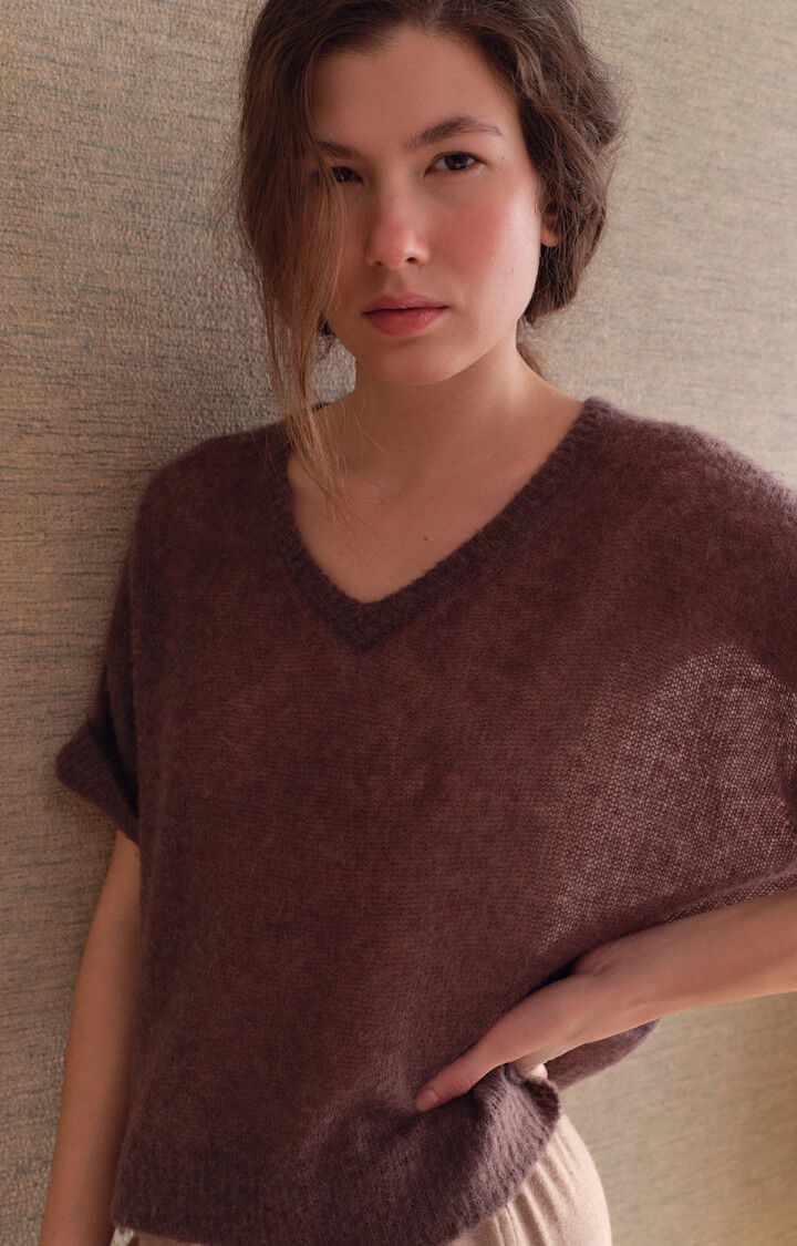 American Vintage – Bodyrow V-Neck Short Sleeve Jumper in Hedgehog